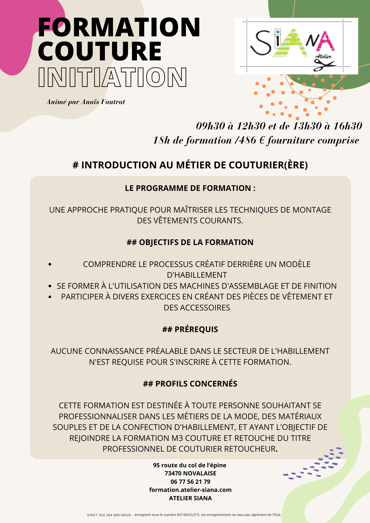 ATELIER SIANA PROPOSE PLUSIEURS MODULES DE FORMATION PROFESSIONALISANTE EN COUTURE ET PATRONNAGE.